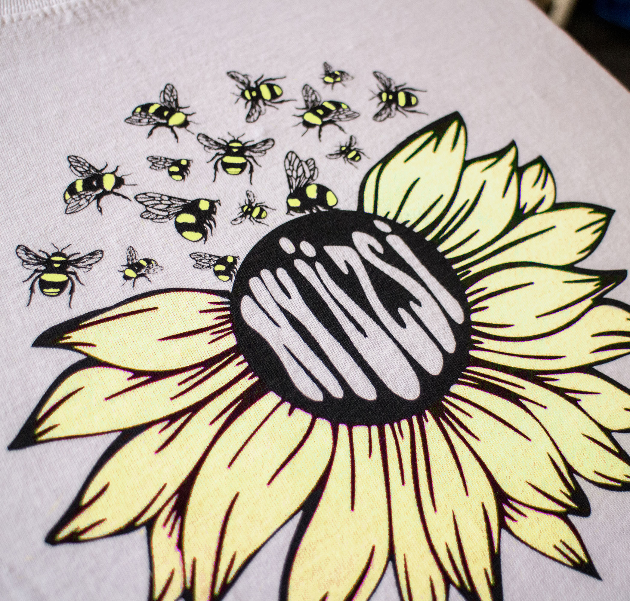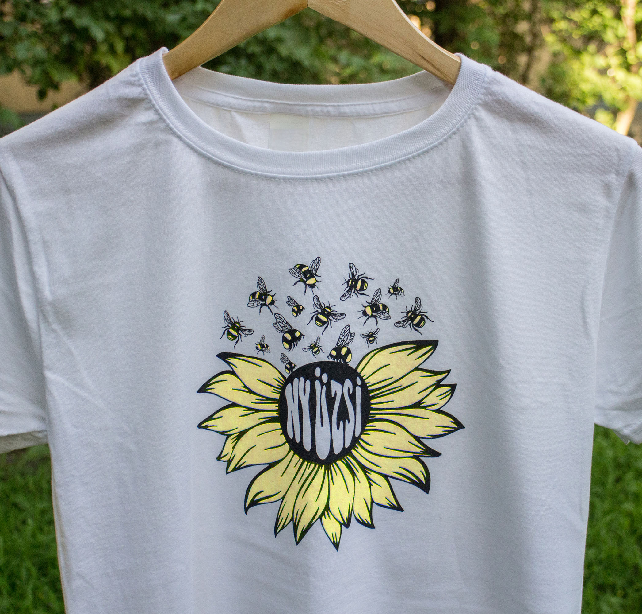 A Nyüzsi egy összművészeti minifesztivál, csoda kis szervezőcsapattal, dj-kkel, kézműves workshopokkal. Voltam az eddigi rendezvényeiken is, kipróbáltam már a kerámia edénykészítést, linometszést, és idén engem is meghívtak, hogy szitanyomás foglalkozást tartsak az érdeklődőknek. A Ferenczi Zsófi által tervezett ‘Nyüzsi’ grafikát lehetett pólóra nyomni feketével, majd lehetőség volt kiszínezni sárga, arany, vagy éjszaka világító textil filccel. Az esemény helyszíne a dunakanyarban található Nomád Bár volt, festői környezetben töltöttük a napot nagyon jó hangulatban, kedves emberekkel.