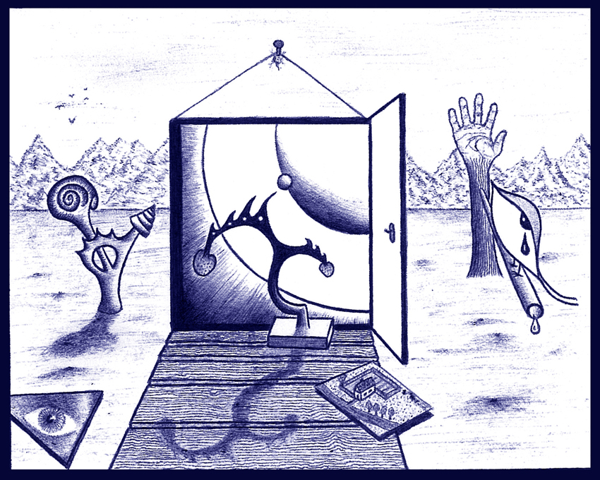 My handmade drawings are made with pen on paper in a few centimeters size, and mostly show entities, objects, and landscapes from my imaginary strange world.