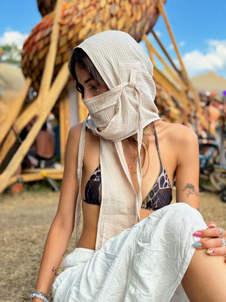 On July 20, the ‘Daughters of Nature’ collection debuted at the Tribal Market – Nirwana summer craft fair, which was held in Dürer Garden. There were samples of all three colors and all three versions, although Noya sewed the light sand-colored variant that morning, but it was finally finished and brought to the fair. We planned to only take pre-orders during the fair, but because of the nearby Ozora festival and because girls asked so nicely, we ended up selling from the samples and even took orders.
