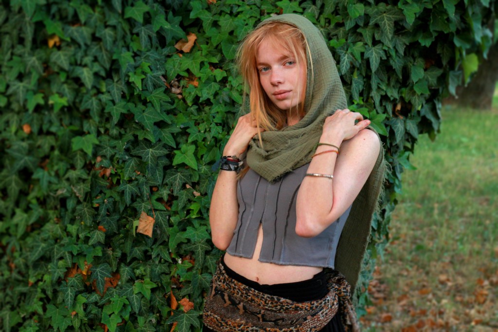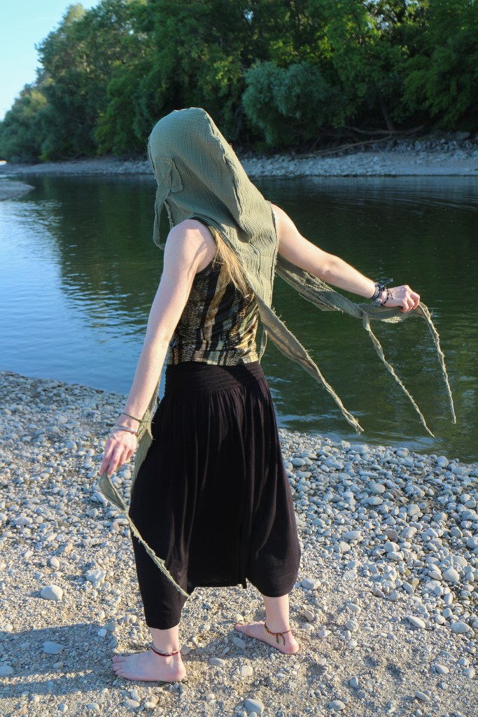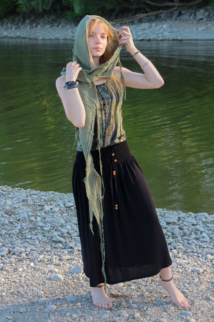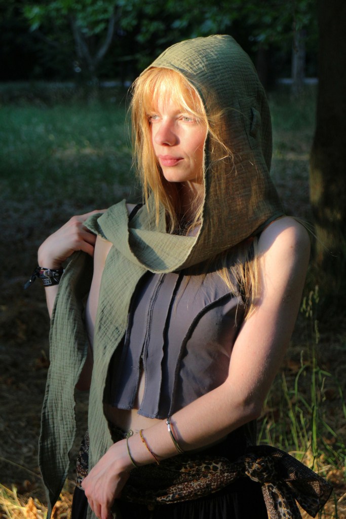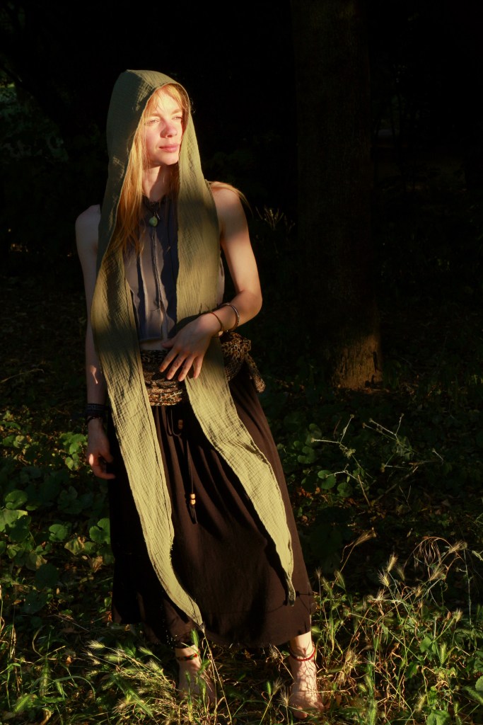 It’s wonderful to see my dream come to life, brought to life by you, the Daughters of Nature. Noya has sewn it into reality, and you girls give it life by wearing it with pleasure, feeling kindly in it, and in return, it protects you and even hides you when necessary. Wear it for a long time in good health, walk a lot in Nature, caress the trunks of trees, and wink at the birds!